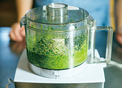 好みでにんにくを入れても。撹拌は全体がなめらかで均一になったらOK。