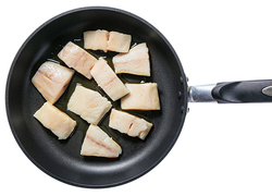 解凍したさばは水けをふき取る。まいたけは小房に分ける。