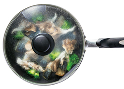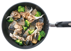 凍ったままのブロッコリー、まいたけ、おろしにんにくを入れ、塩・こしょうをふる。