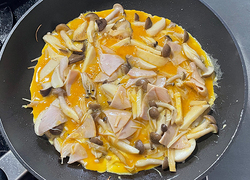 卵液を流し入れ、さっと混ぜて厚みが均一になるように広げる。