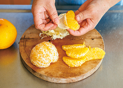 はっさくは白いわたもしっかり取り除いて。苦みがやわらぎ、薄皮もむきやすくなります。