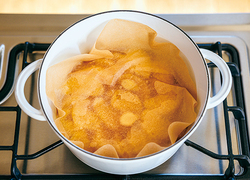 オーブン用シートなどで落としぶたをして、弱火で2~3分煮る。火を止め、そのまま動かさずに粗熱をとる。